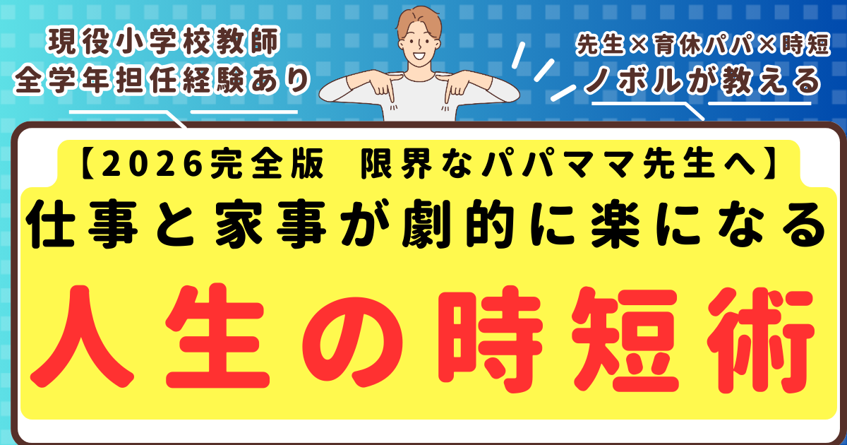 以上、「【2026年完全版】限界なパパママ先生へ。仕事と家事が劇的に楽になる「人生の時短術」TOP20」という話題でした。